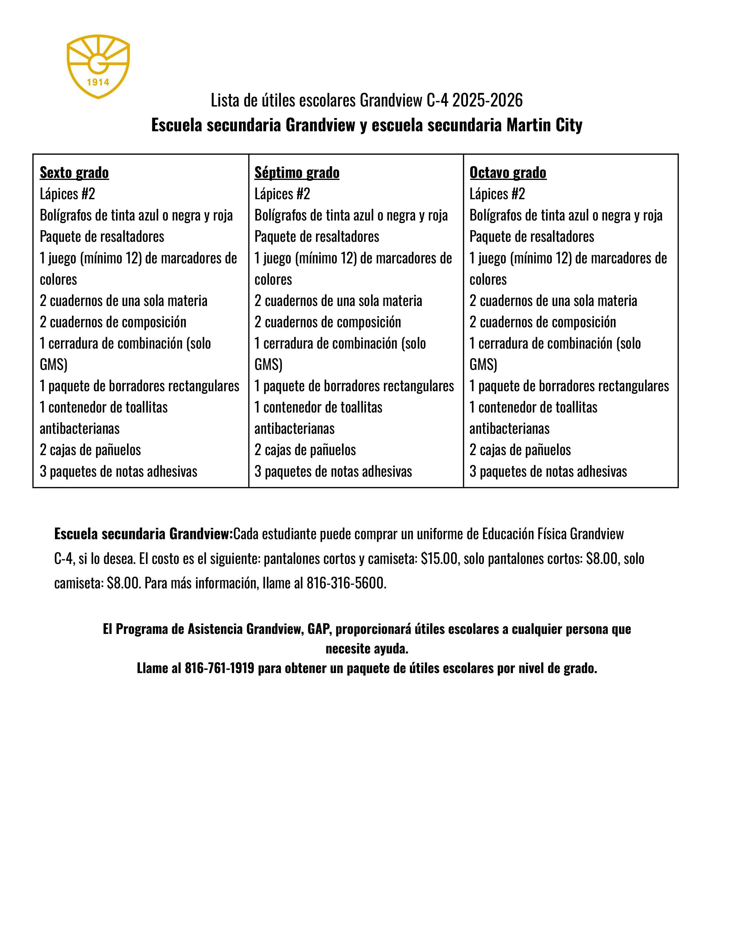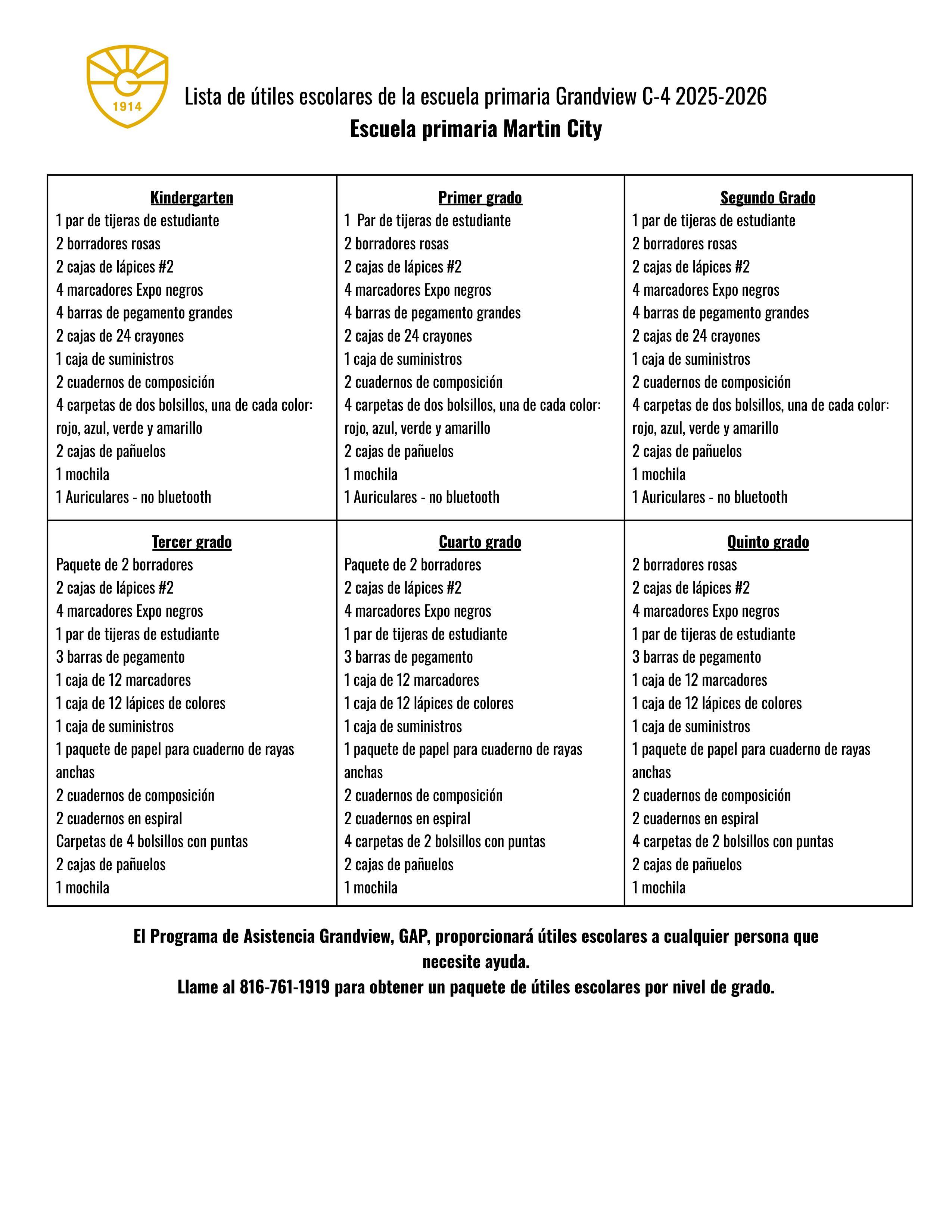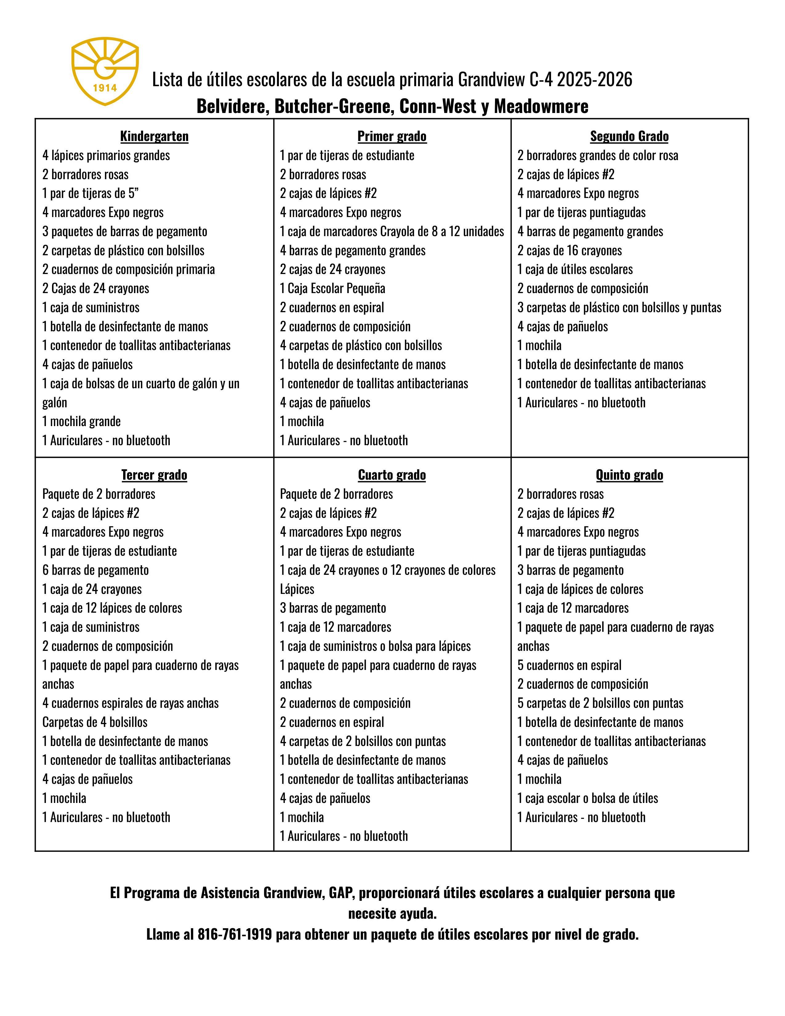 School Supply Lists 25-26 (Spanish)