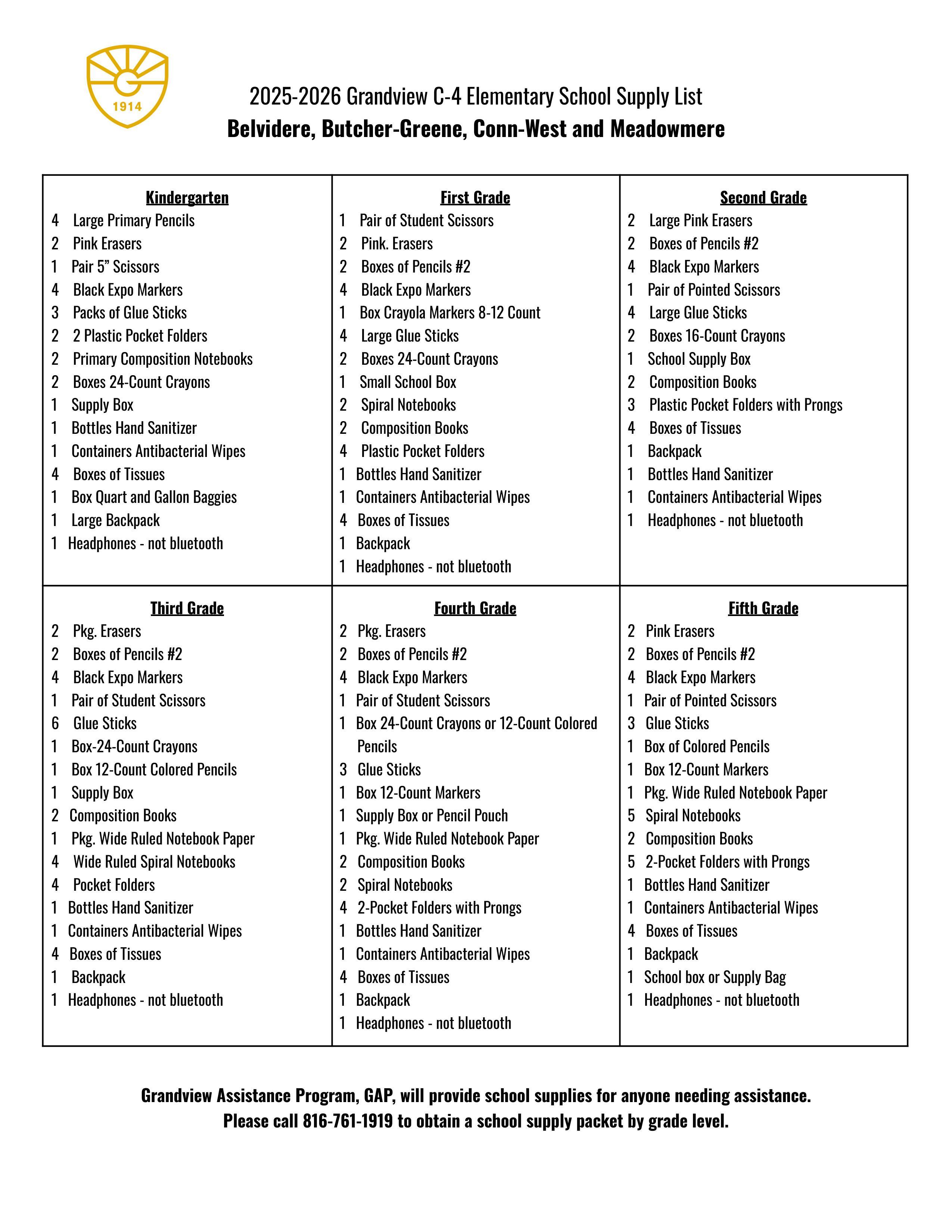 School Supply Lists 25-26 (English)